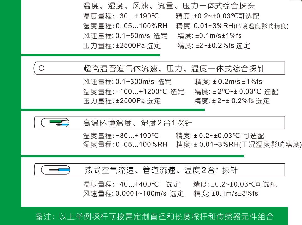 一根探桿可單一傳感器和多種傳感器組合,探桿直徑和長(zhǎng)度按需定制。